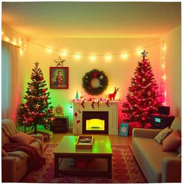 cinematic, Christmas family oriented, jingle bells, choir singing duet, 1980s-inspired, 1990s-inspired, male vocals and female vocals blended voices together duet, sythwave, grunge, nostalgic, ad lib, keyboard electric, guitar electronic