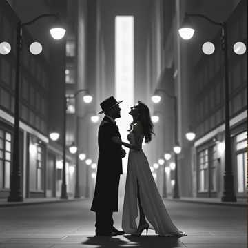 Vintage jazz duet, A romantic mid-tempo swing ballad with smooth male baritone vocals and ethereal female alto vocals, Live acoustic instruments such as grand piano, upright bass, brush drums, soft string section, and delicate jazz guitar are impressive, Elegant 1950s jazz lounge atmosphere with a warm and nostalgic atmosphere, Tempo: 85 BPM, Characterized by gentle call-and-response phrases, soft dynamics, and rich harmonies, Imagine a moonlit stroll through Paris or New York at midnight