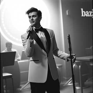 Smooth male crooner with a rich baritone voice and an intimate, expressive singing style