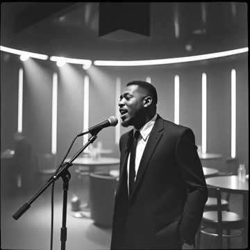 A classy and emotional swing jazz ballad with a soulful male lead vocalist who uses rich falsetto and baritone dynamics, Warm upright bass, brush drums, vintage grand piano, and a bluesy trumpet solo in the bridge section add to the backing, The chorus is full of gospel-style backing vocals with call-and-response and layered harmonies, The song is smooth, elegant, and nostalgic
