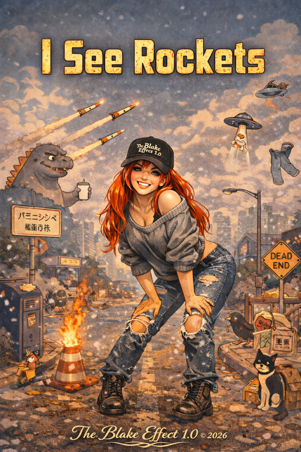 Spoken-story performance in a calm female voice — same character, tone, pacing, and vocal personality as “I See Rockets, ” Keep the voice nearly identical for trilogy continuity, Delivery is conversational, human, lightly sarcastic, dry humor, casual self-talk — not theatrical, not goofy, not dramatic, Short phrases, natural breathing space, real human pacing, Music style: subtle atmospheric Indie-Grunge bed fused with a moody, expressive saxophone, The saxophone should feel emotional, lonely, slightly smoky — supporting the mood, not solo-showy — like a reflective melody wandering through the ruins, Grunge elements are soft and understated: warm overdriven guitar textures, gentle distortion haze, light grit around the edges — no heavy drums, no big rock energy, The music remains minimal and cinematic, leaving space for the spoken narration, Mood: quiet apocalypse, ironic calm, annoyed but unbothered, end-of-the-world ordinary-day vibe, Warm studio mic tone, intimate and close, no SFX