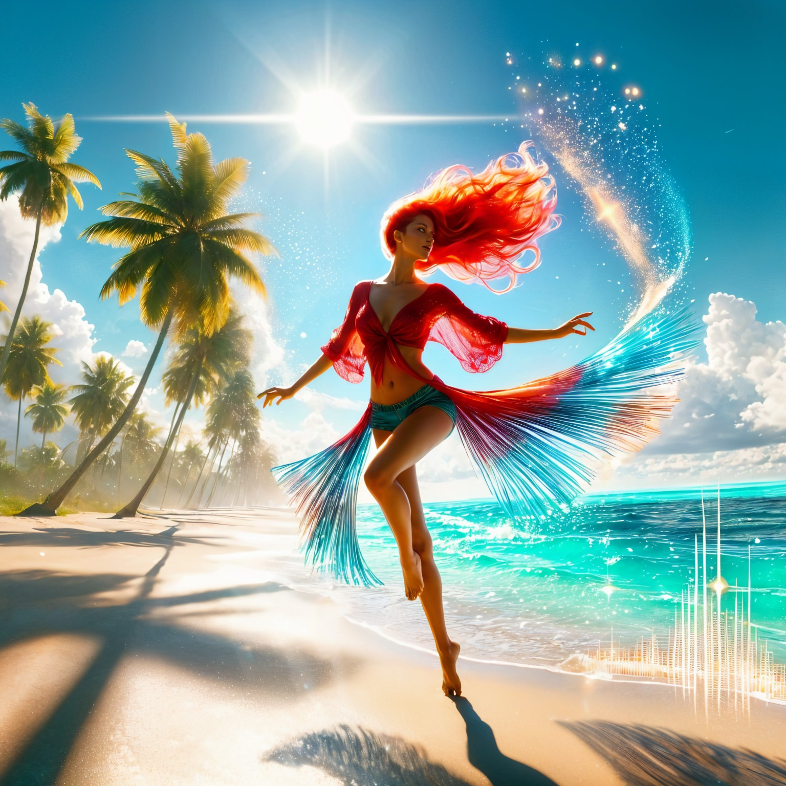 authentic & touchy female vocals with root reggae vibes, tropical house with upbeat house & reggae rhythms, reggaeton with electrostep elements, happy & positive, piano, bright synths, energy bass, acoustic guitar, steel drums, live atmosphere