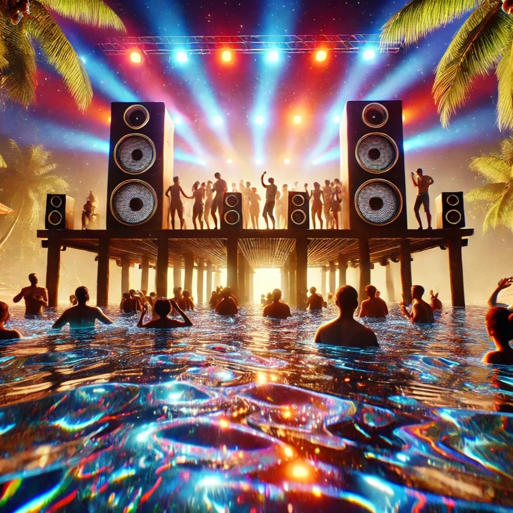 Upbeat Catchy reggae party mix with tropical vibes, tropical pop