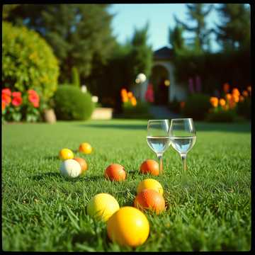 Accordéon pour le côté musette, guitare acoustique qui pose les accords simplement (une "pompe"), une contrebasse rondelette, et des percussions légères, On doit entendre en fond des bruits de partie de croquet : le "TOC" sec du maillet, des boules qui s'entrechoquent, et bien sûr, des bruits de verres qui trinquent et des rires, [Tempo]