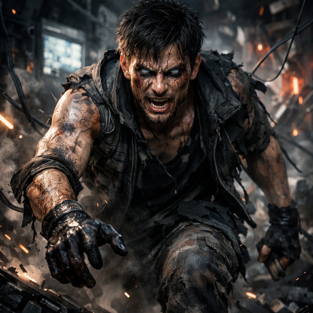 An aggressive industrial rock version at 112 BPM in F# minor, driven by punchy mechanical drums and layered distorted bass, Tight palm-muted guitars dominate the verses, supported by a subtle analog synth drone and filtered pulse that adds depth without turning retro, The chorus expands with wide distorted guitars and doubled baritone vocals, creating a heavy, urgent lift, Industrial textures—metallic impacts, glitch stutters, digital crackle—add tension between sections, The breakdown shifts into a crushing half-time stomp with deep sub-bass weight, Analog synth elements act as atmosphere rather than lead, giving warmth beneath the cold mechanical surface, The mix emphasizes low-mids and grit, avoiding polish while keeping clarity and impact