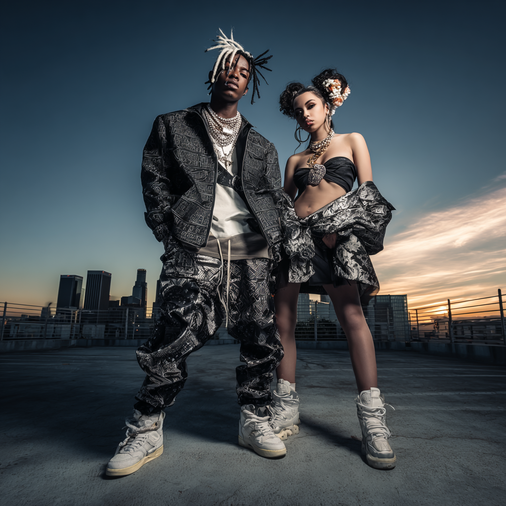 Smooth conscious hip-hop with a cool, deep melodic bassline as the foundation, Lo-fi inspired but clean production — warm vinyl texture without heavy hiss, Mid-tempo groove around 90–95 BPM, Tight, minimal boom-bap drums with crisp snare and subtle swing, Atmospheric Rhodes or soft electric piano chords, Male lead rap vocal confident, articulate, expressive but relaxed, Female vocal support woven throughout — melodic hooks, soft harmonies, occasional sung responses in chorus, Duet dynamic — call-and-response moments between rapper and female vocalist, Clean mix, spacious, no distortion, modern clarity, Mood: intelligent, reflective, communal, confident, inclusive, Optional add-ons if you want more depth: