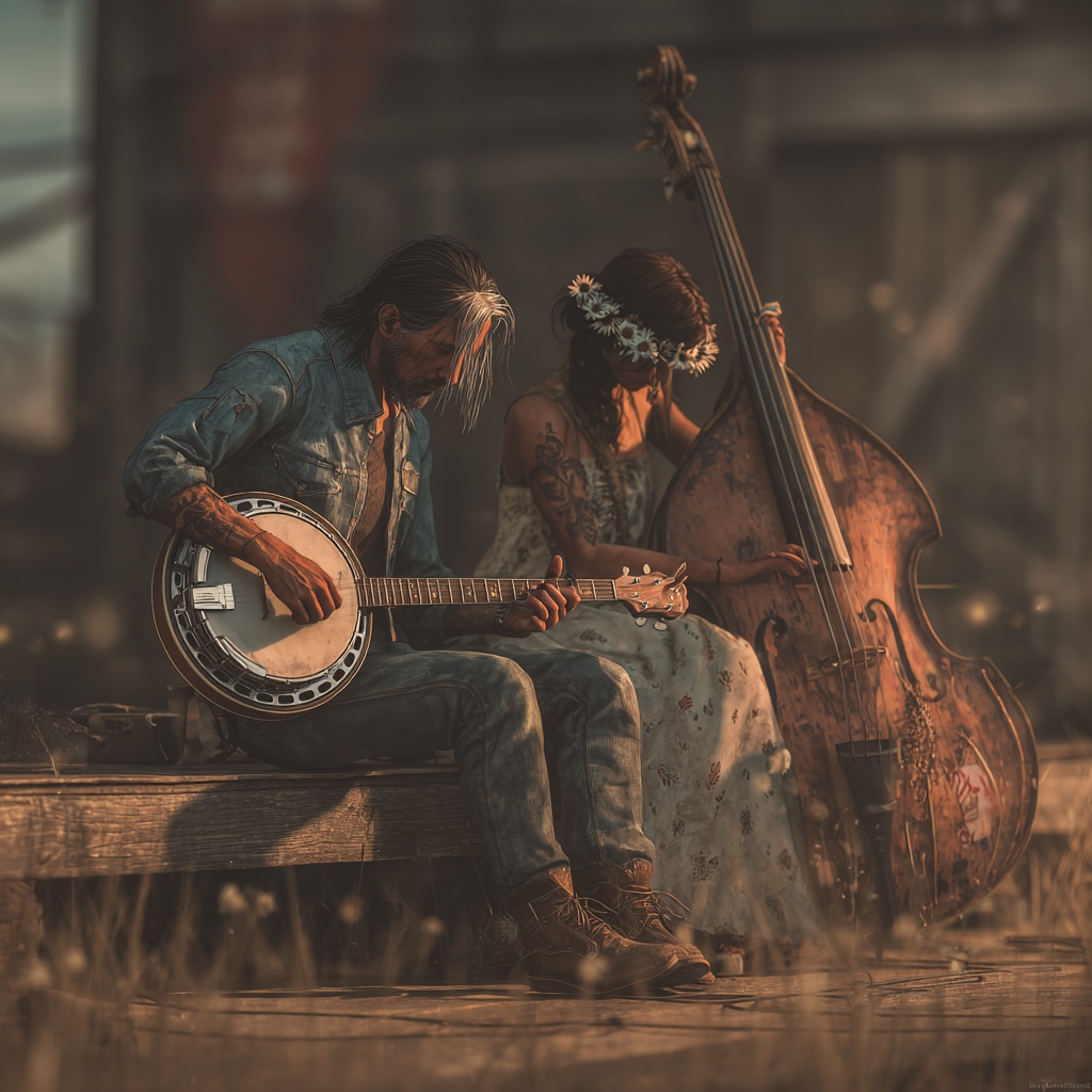 Traditional bluegrass duet, Fast but warm tempo, Bright acoustic guitar rhythm, lively mandolin chop, driving upright bass, fiddle fills between vocal lines, light banjo rolls, Romeo lead vocal on first verse, Chorus lead on second, tight male/female harmony throughout choruses, Close-mic, front-porch feel, Energetic but heartfelt, No drums, Organic, live band sound, Appalachian warmth, joyful and rustic, Strong harmony blend, clean acoustic production