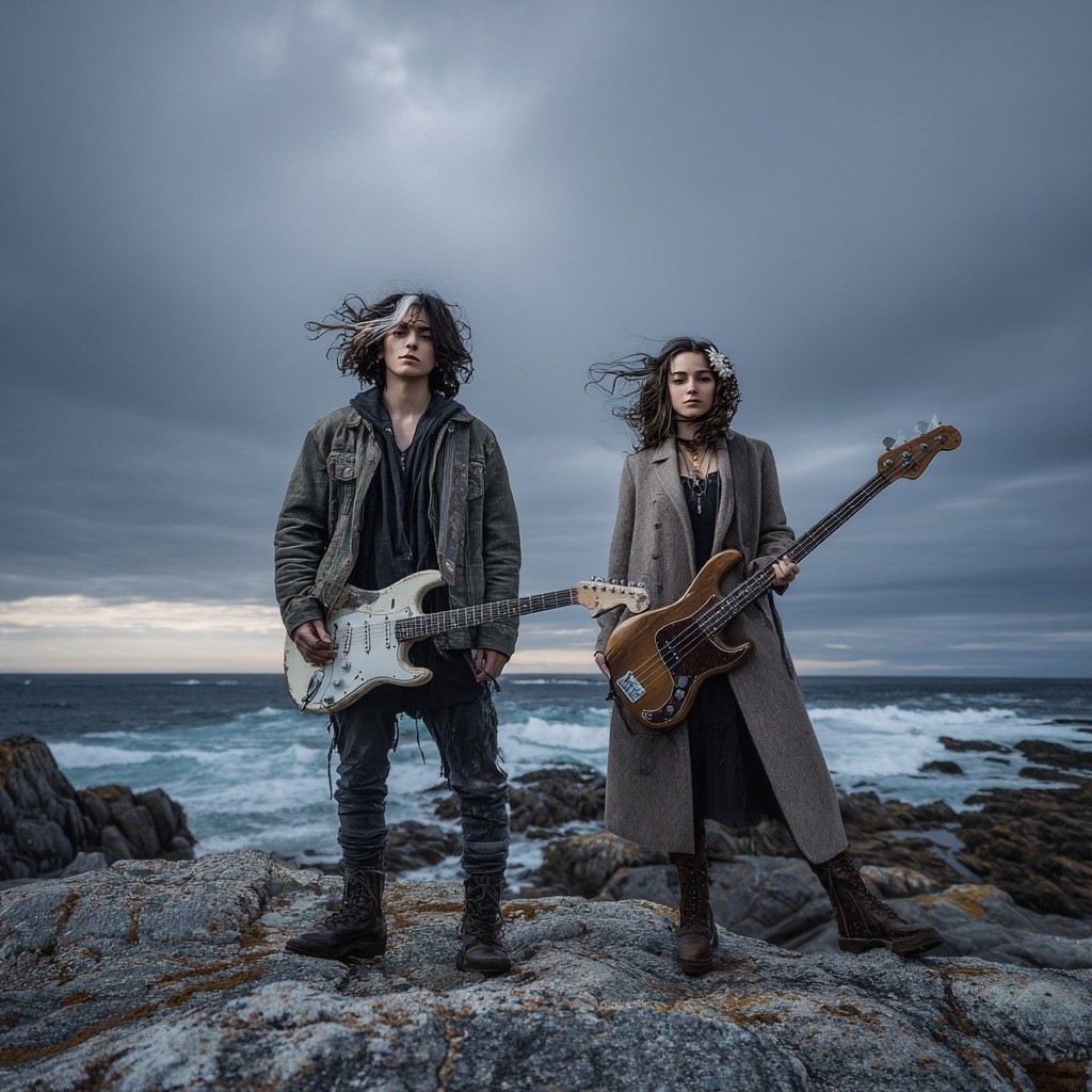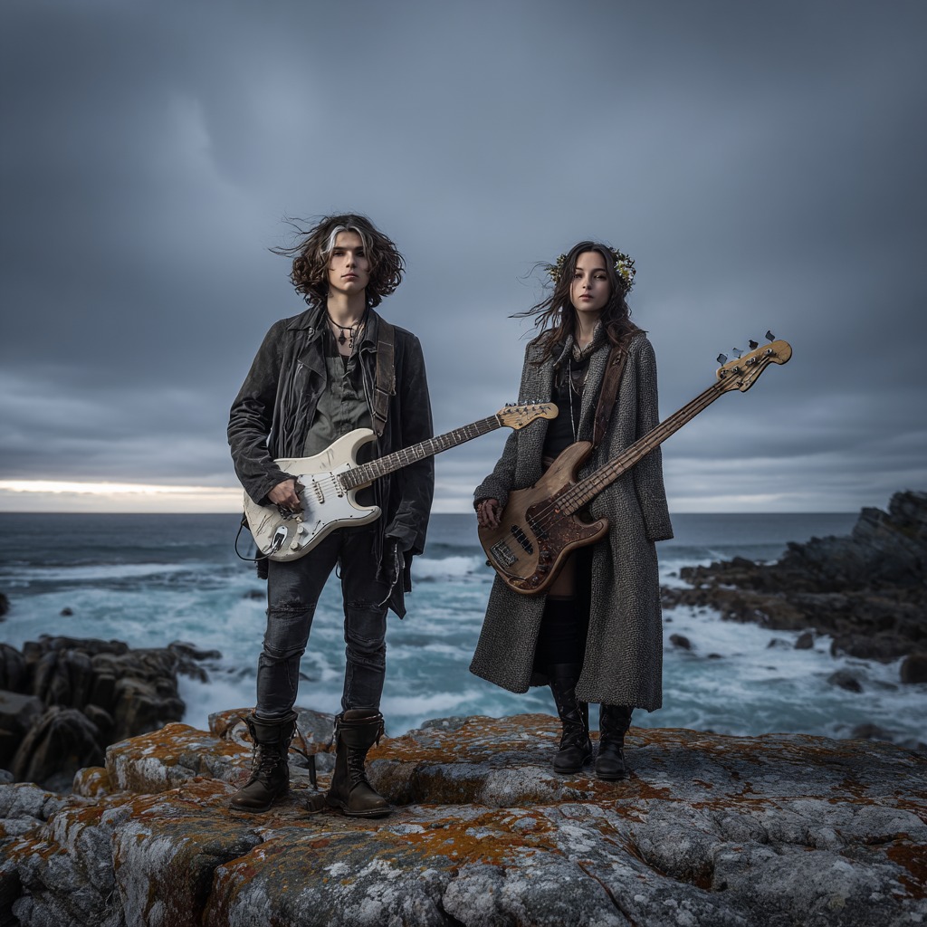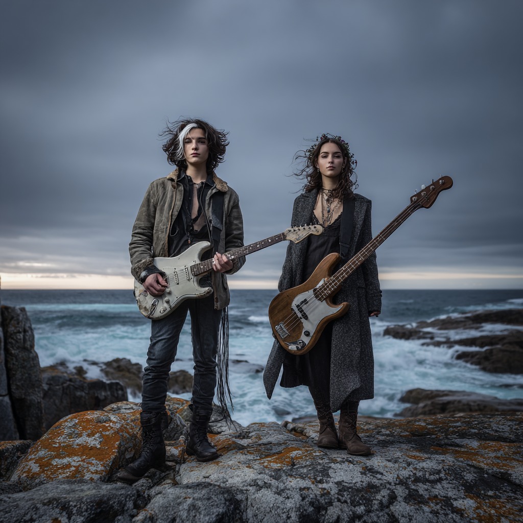 Modern hard rock duet, riff-driven, anthemic, clear and powerful