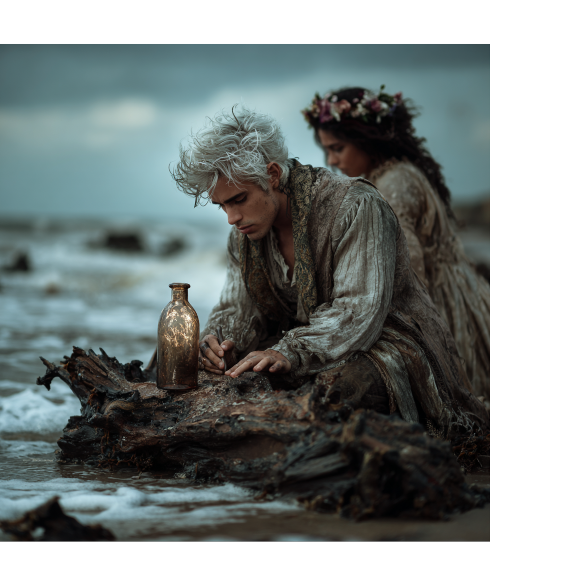 Four male voices only, completely a cappella, Start with a lone tenor singing in a mournful, weathered sailor tone — slow, free tempo, sparse harmony entering softly underneath (low bass drone, distant baritone hum), Minimal rhythm at first, like wind over water, Gradually introduce full four-part harmony (tenor, baritone, bass, high harmony), Tight maritime vocal blend, No instruments, Midway through, tempo subtly firms into a steady 4/4 shanty pulse, Add strong rhythmic phrasing, stomping implied through vocal accents (no percussion), Harmonies widen and grow louder, emotionally swelling, Final chorus fully rousing — unified male voices singing boldly, triumphant, communal, wind-in-the-sails energy, Raw, organic, pub-singalong resonance, Authentic Atlantic feel, Emotional arc from isolation to brotherhood and rescue, Mood progression: lonely castaway → fra