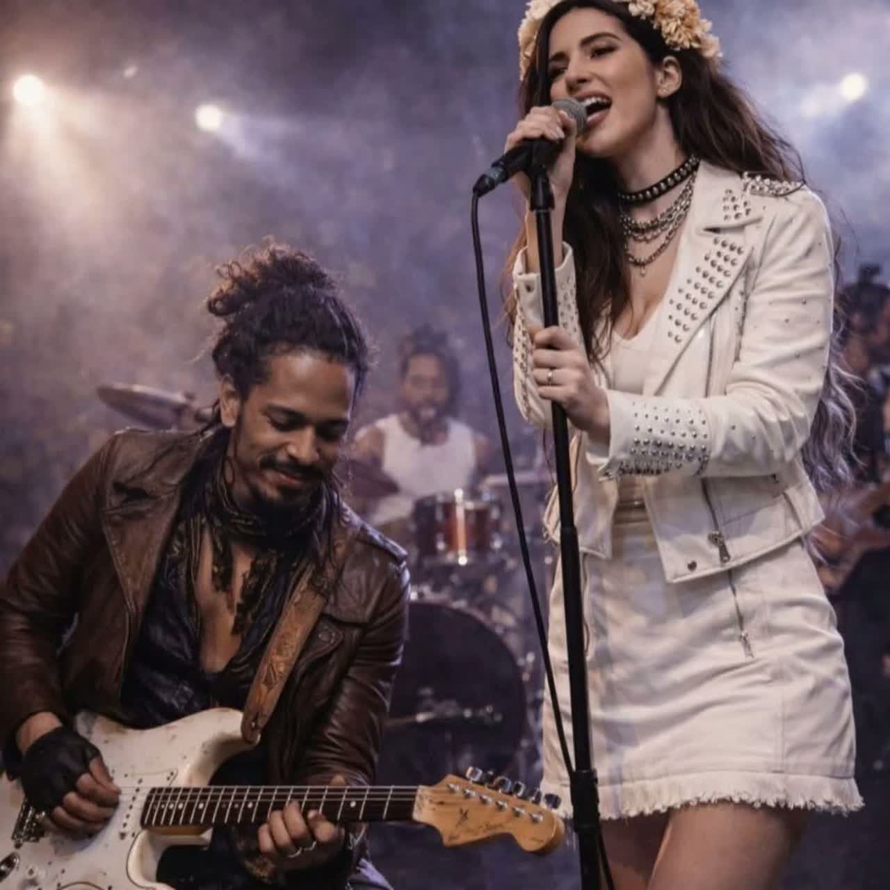 Power pop anthem with crunchy electric guitars, sharp tight chords, occ riffs, melodic bass line, energetic drums, layered male and female vocals, bright harmonies in the chorus, and an uplifting theme about hope, light in darkness, and human connection, Think emotionally charged with stadium-sized hooks and a climactic bridge, A message of hope and love for Vitans!