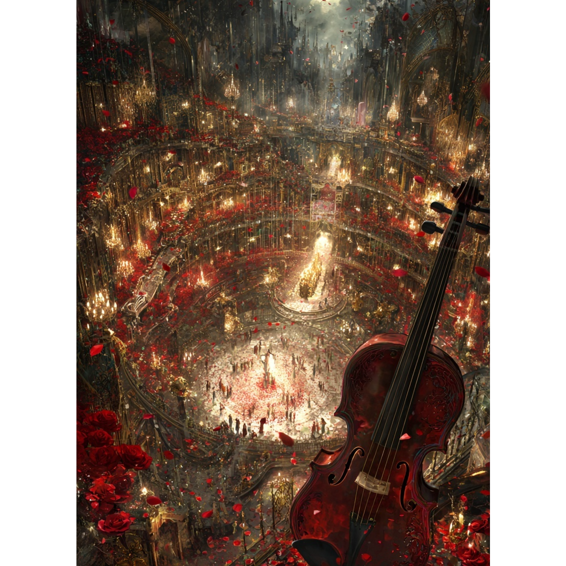 [violin and double bass POP-jazz-rock instrumental, inspired by a grand evening ballroom dance, ]