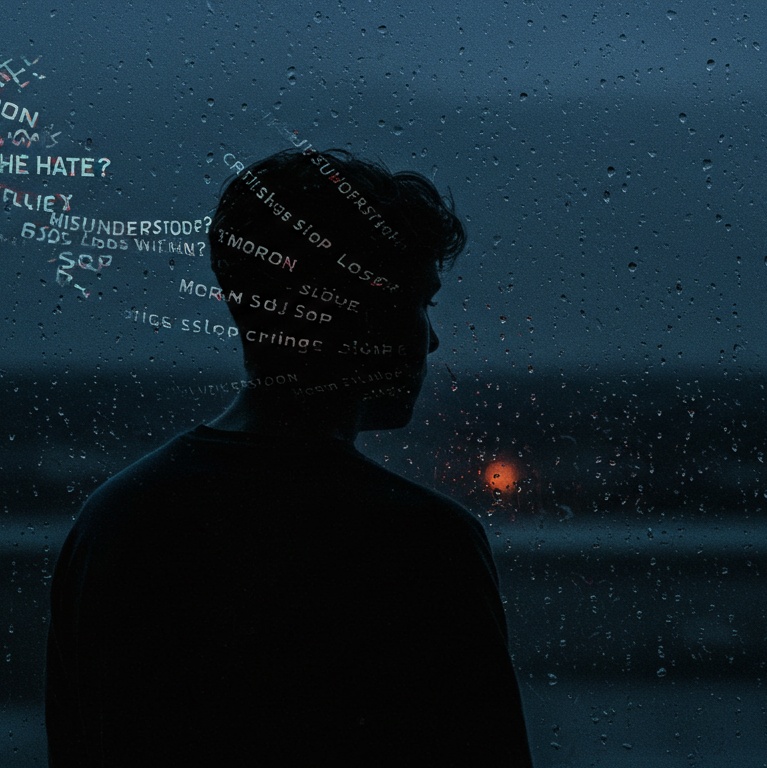 Intro:Instrumental, C1:Whisp, V1:Earnest, C2:Aggro, Main:Waver, C3:Taunts, C4(Taunt):Sneer"ADHD art theft", MusicStop/Sigh, Retort:Anger, "Say to my face!", "Google yourself", "Throw down/frown/shown!", Bridge:Powerful, Empathy, imperfection, uplift, C5:Hollow, Final:Resolute, "misspent/repent", Outro:Swell/fade, defiant hope