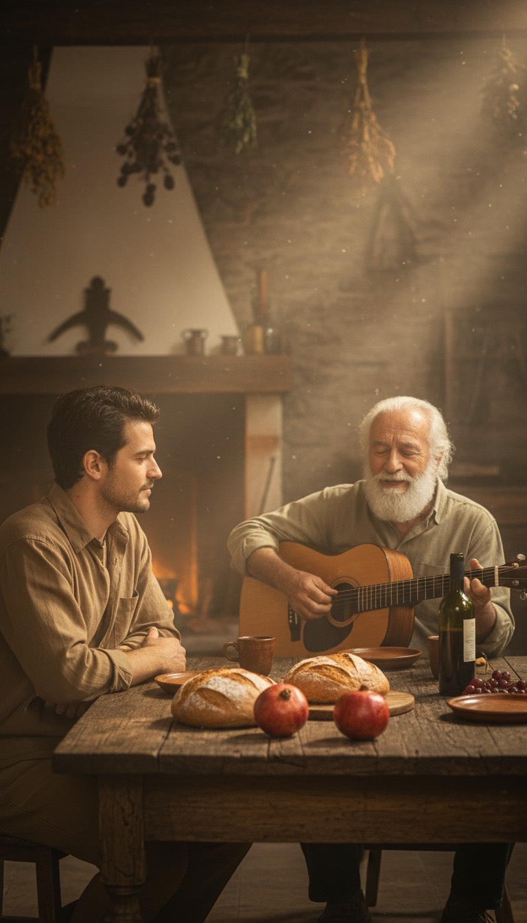 Canção folk portuguesa de intervenção, inspirada no espírito de Zeca Afonso, Arranjo simples e orgânico, centrado em guitarra acústica dedilhada, percussão discreta e vozes em uníssono ou coro popular, Melodia clara e cantável, ritmo caminhante, quase de marcha suave, Letra convidativa e fraterna, com apelo à união, amizade, partilha e esperança coletiva, Linguagem direta, poética mas acessível, sem ornamentos, Atmosfera calorosa, comunitária e intemporal, como uma canção cantada em roda, na rua ou à mesa, com produção crua e honesta