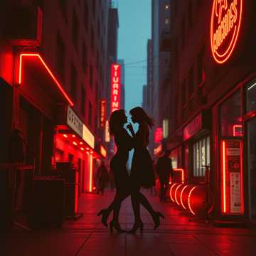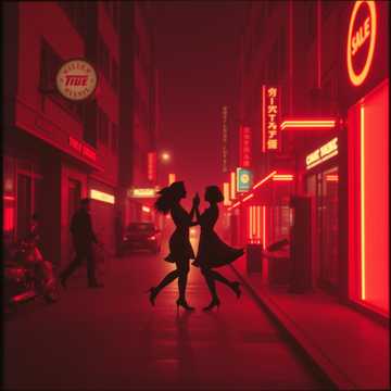 _, Indie-disco darksynth EDM at 106 BPM with crisp four-on-the-floor kick, open hats, handclaps, swung percussion, fingerstyle bass, Jangly electrics, light acoustic strums, buoyant piano, playful horns, minimal pads, flickering 80s synth bursts, Verses stay tight and intimate; choruses open with layered rhythmic hooks, call-and-response, and breathy gaps, Vocals sit upfront with close harmonies, casual doubles, and ad-libs, Clean, wide production with light plate reverb and subtle glue, night-drive feel, Then Japanese city-pop boogie at 116 BPM: glossy LinnDrum punch, tight claps, crisp hats, syncopated toms, chorus-clean guitar, DX7 stabs, Juno pads, string-machine, brassy synth hits, slap-bass, sax riffs, muted trumpet, nylon-guitar and vibraphone sparkles, Male-female duet blooms into lush harmonies and vocoder doubles; breakdown drops to hats, bass, keys, then snaps back, Brief talkbox replies and octave synth-bass runs push the hook, Add reverse cymbal lifts and tape-stop flickers, ‑UnAmerican