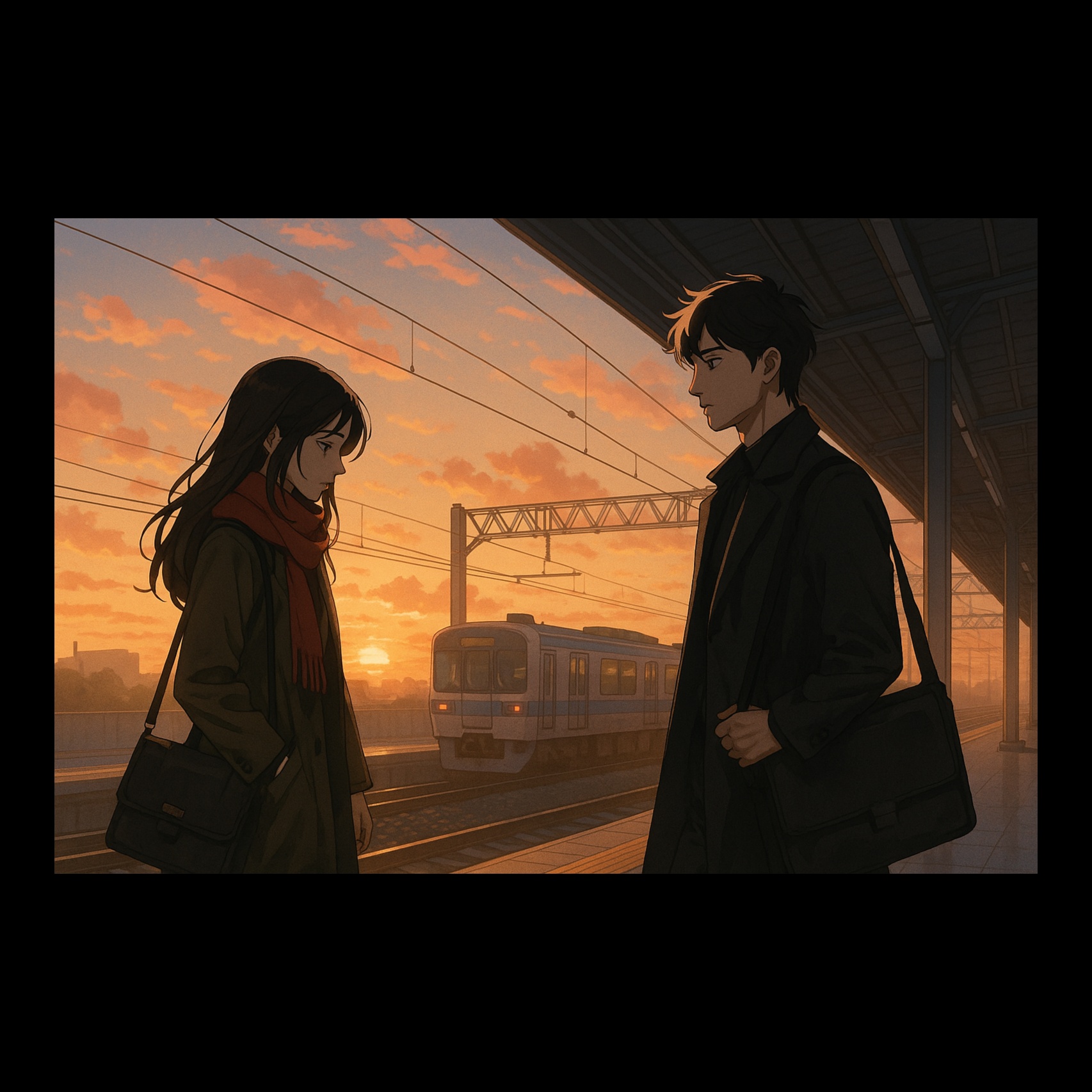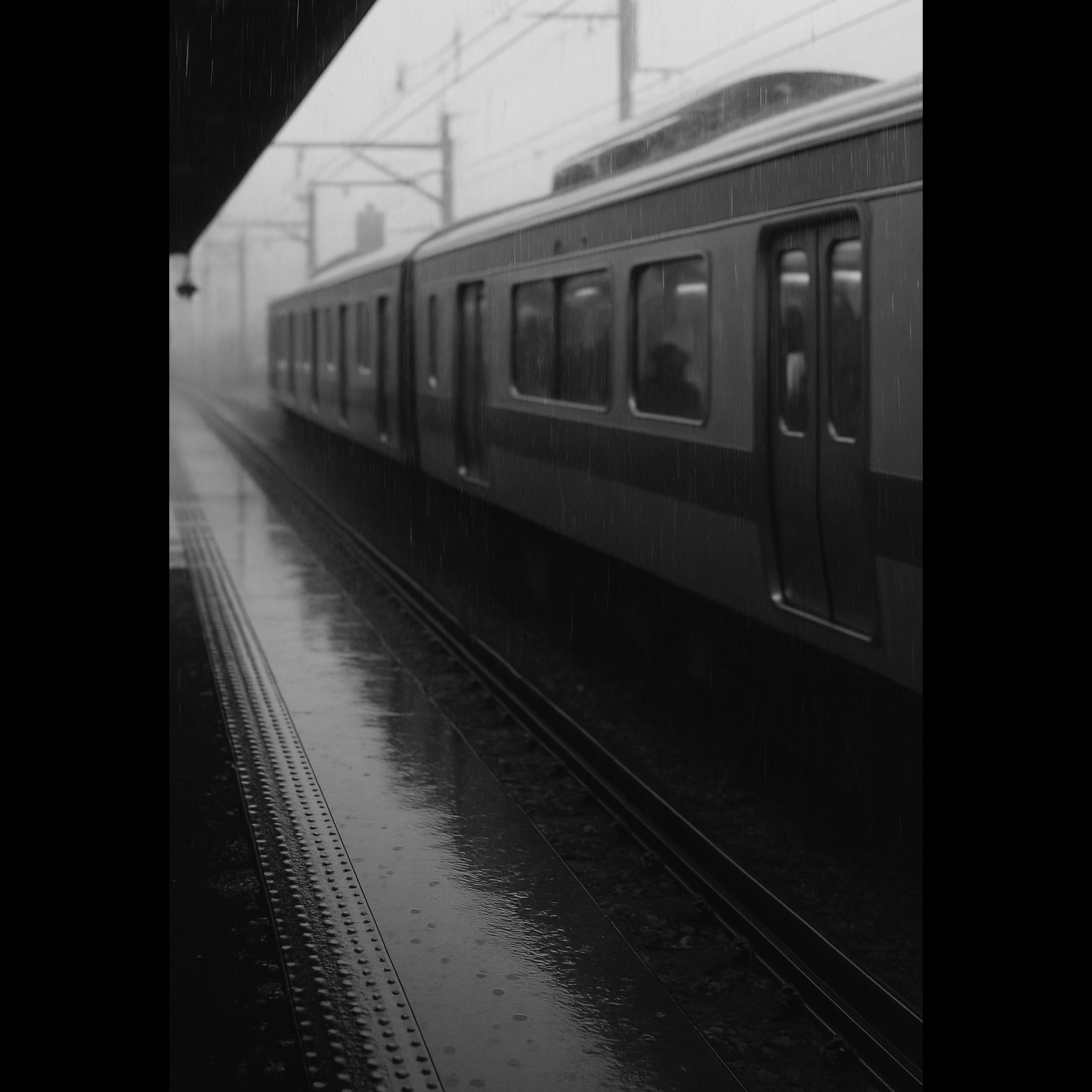 acid jazz with soft electric piano and jazzy brushed drums, emotional female Japanese vocals, nostalgic rainy city mood, ambient train and rain sounds, mellow tempo, poetic phrasing, soulful minor key, 3min30sec, inspired by monochrome memories and quiet longing at dusk, female vocals