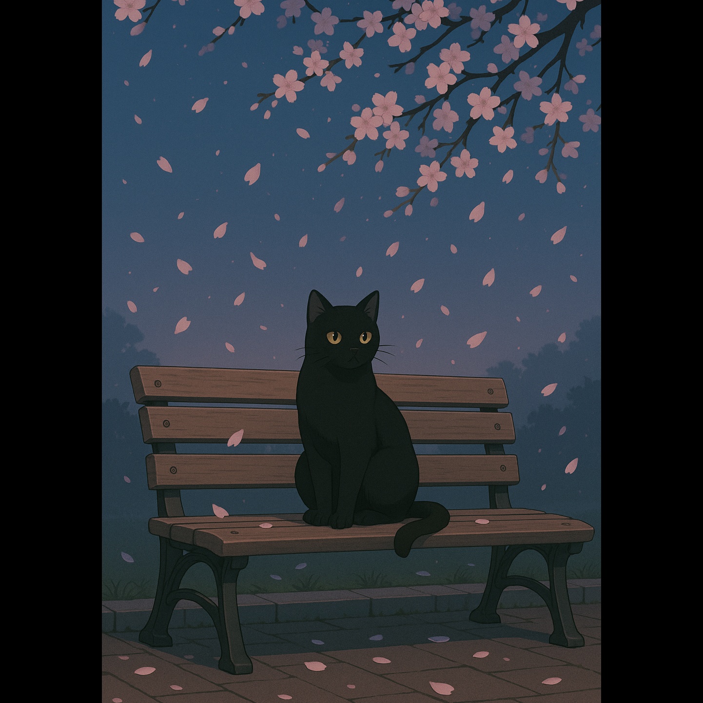 Melancholic ballad with soft acoustic guitar and ambient piano, The lead vocal is a lonely stray cat with a fragile, whisper-like tone, Gradually layered with a warm female harmony, comforting and gentle, Background includes faint ambient night park sounds, wind, and distant footsteps, Towards the end, male low harmonies join softly, building into a hopeful unison, Slow tempo, 3/4 or 6/8 time, emotional but warm, Keywords: lonely, soft, harmony, hope, night, cat, bittersweet