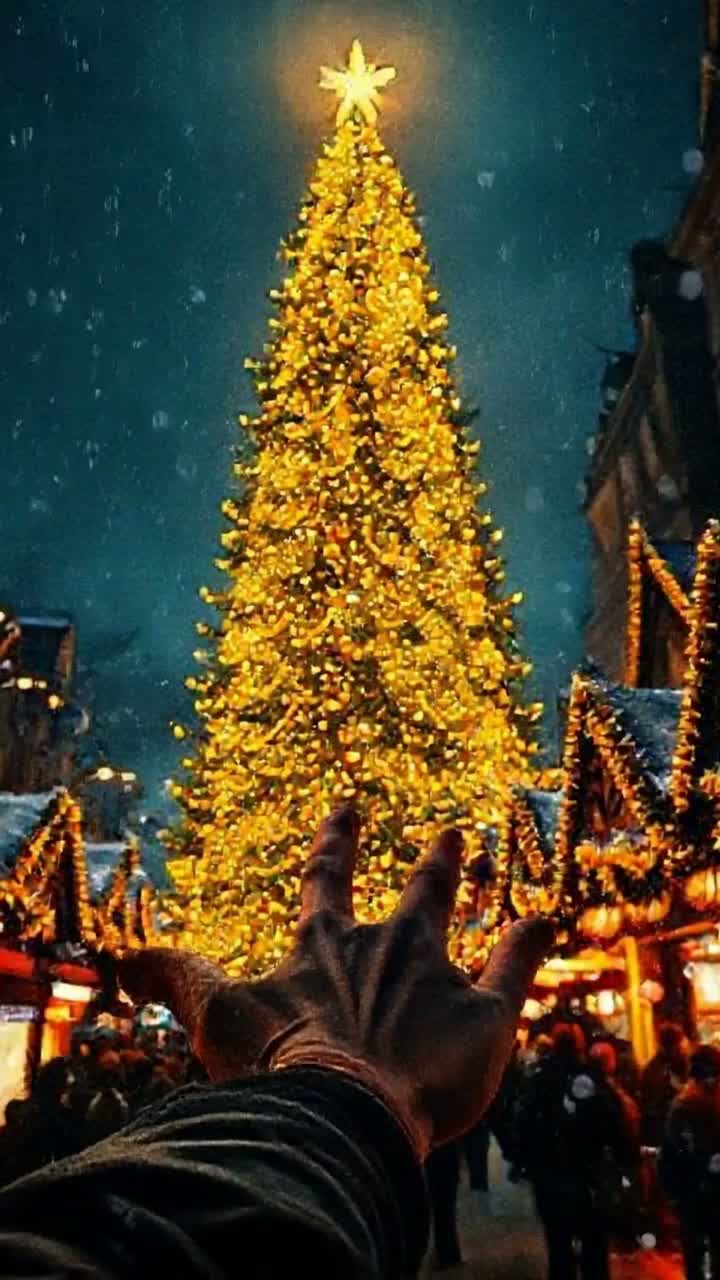 Walking through a Christmas market hand in hand — warm, magical, nostalgic, peaceful