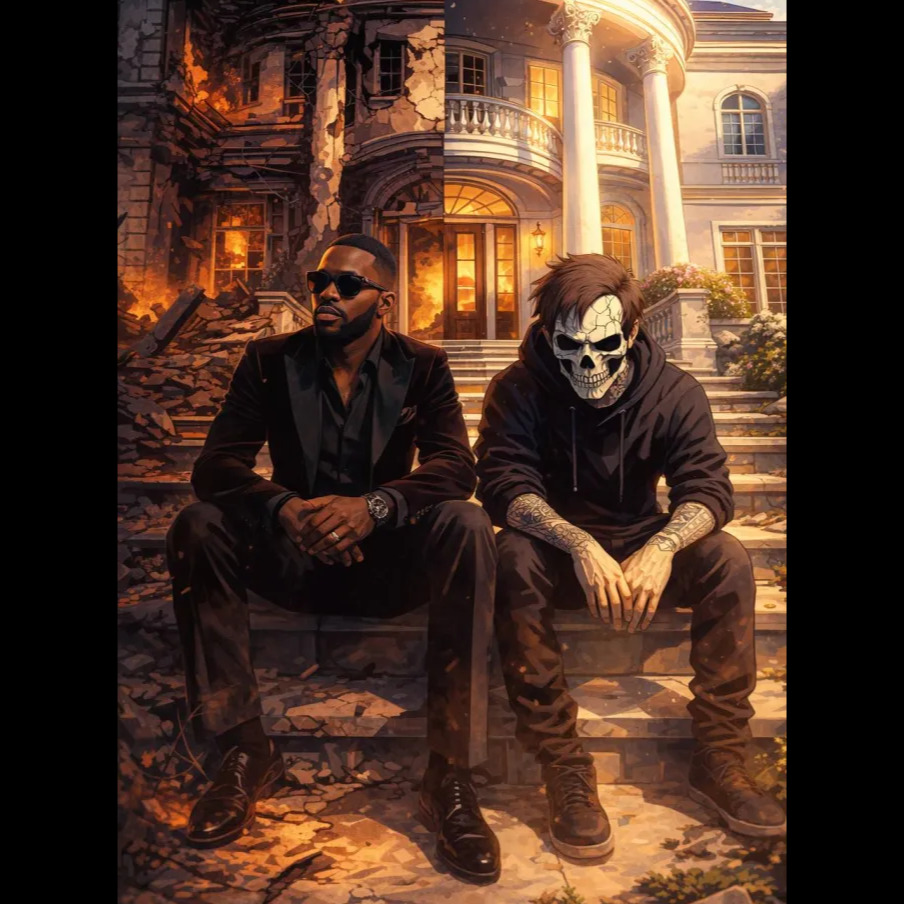 Launching with frantic four-on-the-floor punk drums at 180 BPM, the trackβs distorted bass powers snarling root notes, Electric guitars slice through with power chords and quick riffs, alternating between gritty textures in the verses and thick, aggressive layers in the chorus, Raw, nasal vocals shout in aggressive sync with guitarsβverses tight and rhythmic, choruses erupting with energy, Spoken word sections, filtered with witch house atmospherics and post disco rhythmic flourishes, disrupt the urgency, Experimental rap flows burst in over warped guitar, while sudden, mathy swancore guitar cuts add unpredictable turns, The mix stays rough, vocals cavernously reverbed, instruments forceful and unrestrained