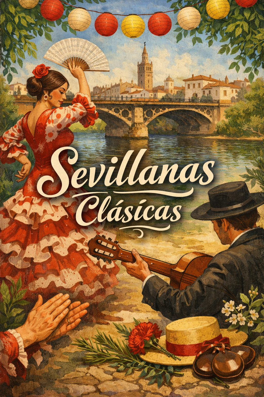 Sevillanas que huelen a feria y al sur: guitarras, palmas y coros llenos de alegría andaluza. Un recorrido festivo y reconocible por la tradición, el baile y la emoción de las sevillanas de siempre.