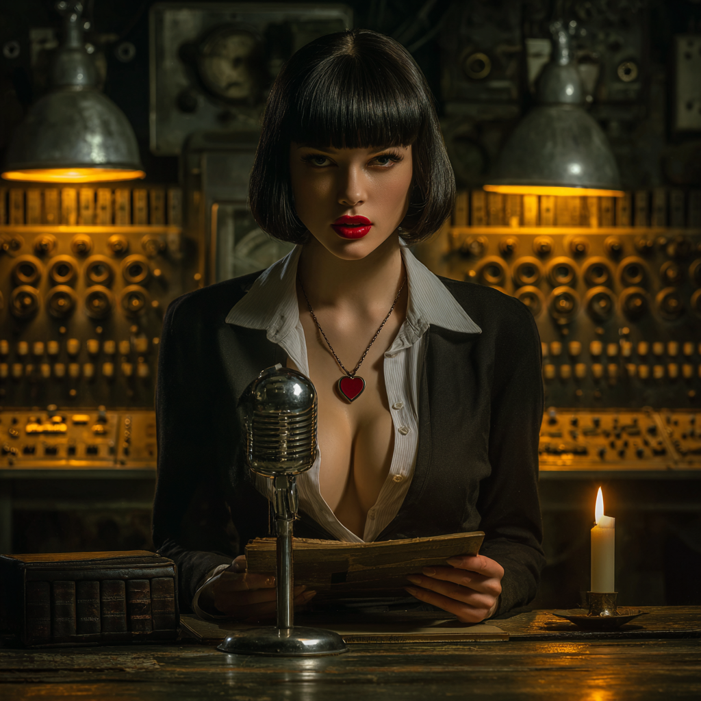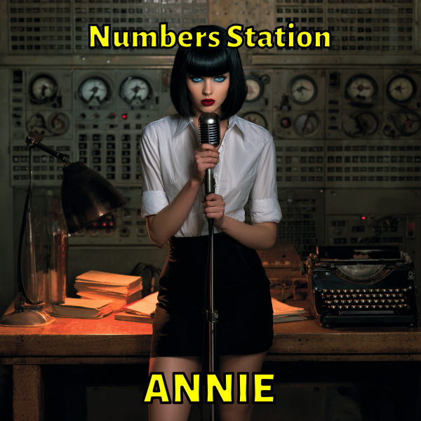 A slow, sapiosexual intrigue, ethereal seduction, dark witch, deep house, electro Romanian EDM - Annie is the ultimate hypnotic slow build siren of the airwaves: sweet, dreamy, and secretive, calling over impossible distances with cosmic reverb, Intro: Fading in from heavy static crackle, Morse-code insect hum; then her voice emerges soft, intimate, close-mic'd, Verse 1: Voice steady, hypnotic, with subtle reverb tail, Chorus 1: Layered harmonies swell slightly, cosmic echo from "Saturn rings" frequency bounce simulation, Verse 2: Reading a "list" like poetry, with deliberate pauses for tension, Chorus 2: Voice builds, more intimate and breathier, Bridge: Voice drops to a near-ASMR whisper, repeating codes like a heartbeat, Verse 3: Slower tempo, voice dropping even lower, more ASMR-intimate; codes delivered with sensual precision, Outro: Voice lingers, under rising jungle hum designed for seamless loop fade: carrier wave tone decays but subtly re-introduces faint dial-twist