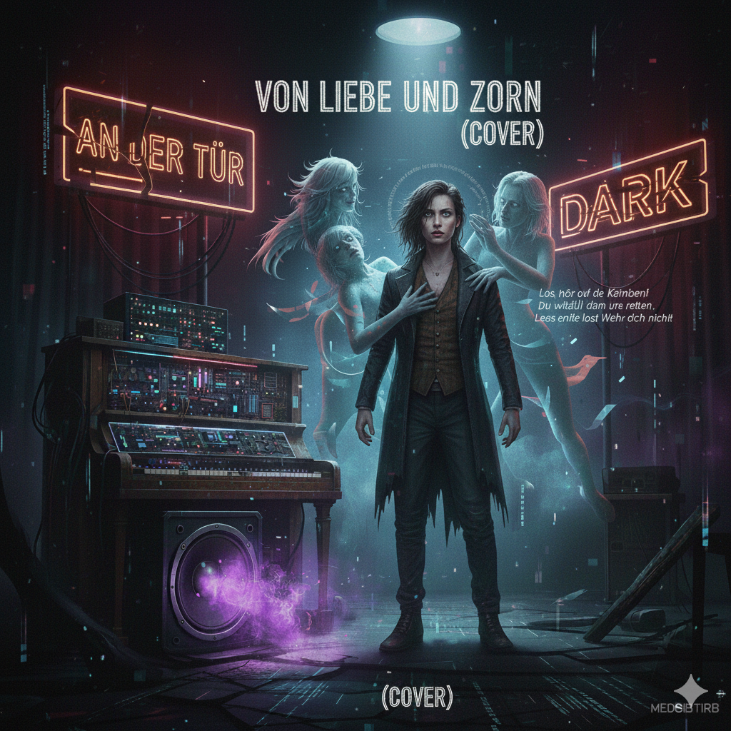 Dark synth-pop with theatrical cabaret influences, blending eerie melodies, dramatic piano, and glitch textures with a heavy trap-style 808 kick, The sound shifts between minimal tension and explosive, chaotic energy, evoking psychological instability and haunting moods, Vocals range from whispered lines to emotional screams and spoken passages, processed with distortion, pitch modulation, and glitch effects, Reverb, delay, and dynamic filtering add depth and movement, creating a dense and unsettling atmosphere that feels intimate, unstable, and theatrically intense
