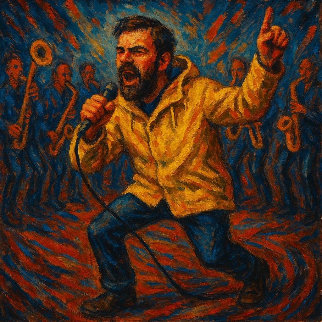 Punk Brass, Rage Rap, protest theme, saxophone, political rap vocals, funky drums, theme, hip-hop, rebellious mood, powerful horn section, rap, funky, german brass hip-hop