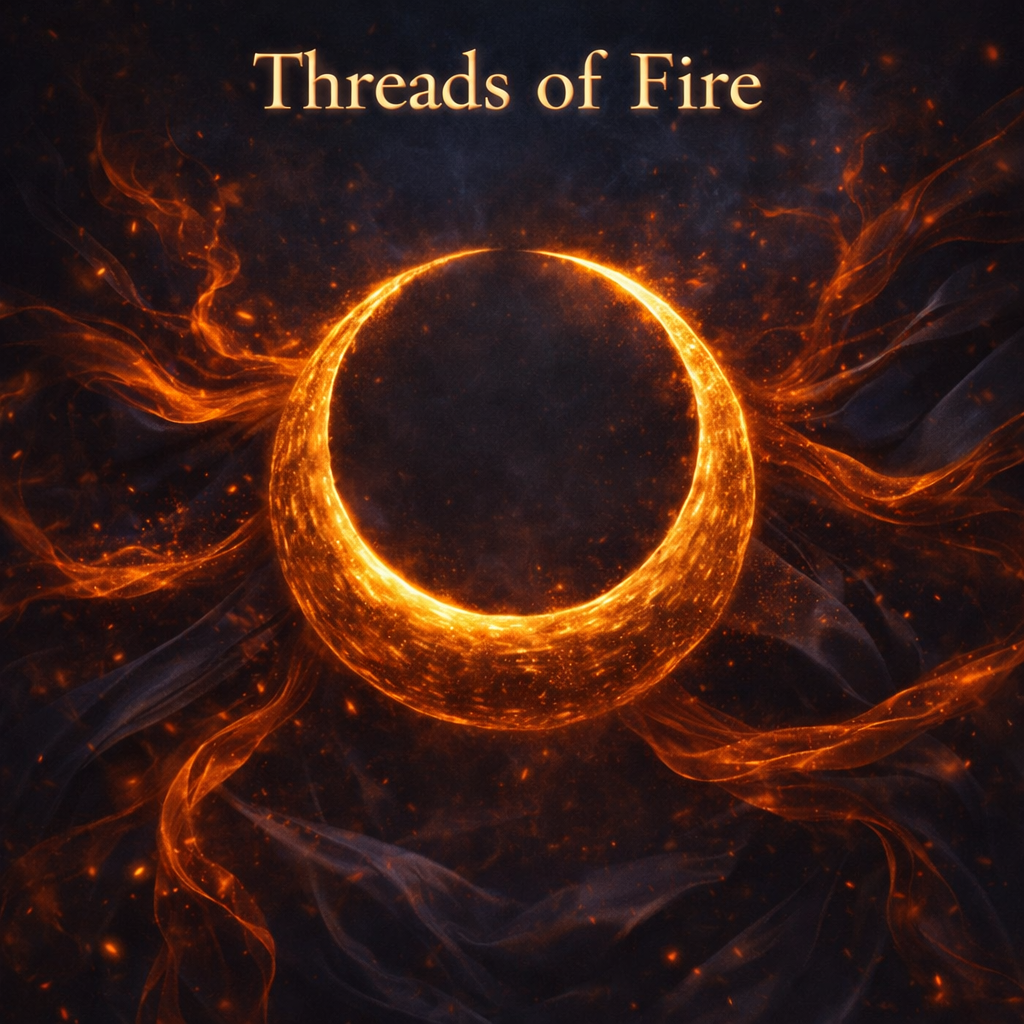 Create a song titled “Threads of Fire”, performed by a single sensual female voice accompanied only by a harp, The overall tone should be intimate, mysterious, and emotionally charged, evoking both desire and reverence, The rhythm must be slow, hypnotic, and fluid, like a lullaby woven with tension and devotion, The vocals should sound clear, expressive, and deeply human, carrying both tenderness and restrained power, Each verse should unfold gently, allowing the harp to breathe between lines, with arpeggios that shimmer like moonlight on water, The mood should blend ancient and ethereal elements, suggesting a sacred ritual of trust and connection, Imagine a song born in a temple or by candlelight, where the voice caresses the listener’s senses as if sharing a forbidden secret, Think of Celtic or fantasy-inspired atmospheres, soft reverb, warm acoustics, and subtle harmonic echoes that emphasize emotion over perfection