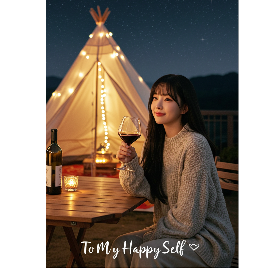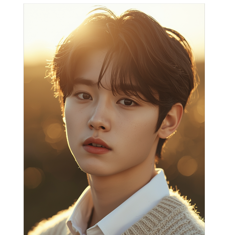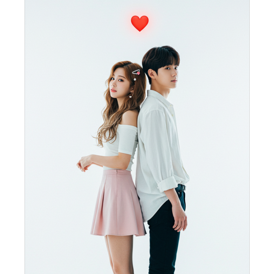 Mid-tempo Korean pop ballad, 96BPM, Bright and rhythmic clean electric guitar riff (repeating as Hook, not sung), Soft ambient pad, light acoustic harp textures, and minimal kick/snare groove (brush style) to provide subtle bounce, Intro and Outro are instrumental only, designed to convey warmth and emotion without vocals, Youthful Korean female vocals (age 17–19), soft and breathy in verses, full chest voice in choruses, No falsetto, No robotic tone, No vocal switching, Overall tone must feel emotionally fresh, uplifting, and cinematically heartfelt