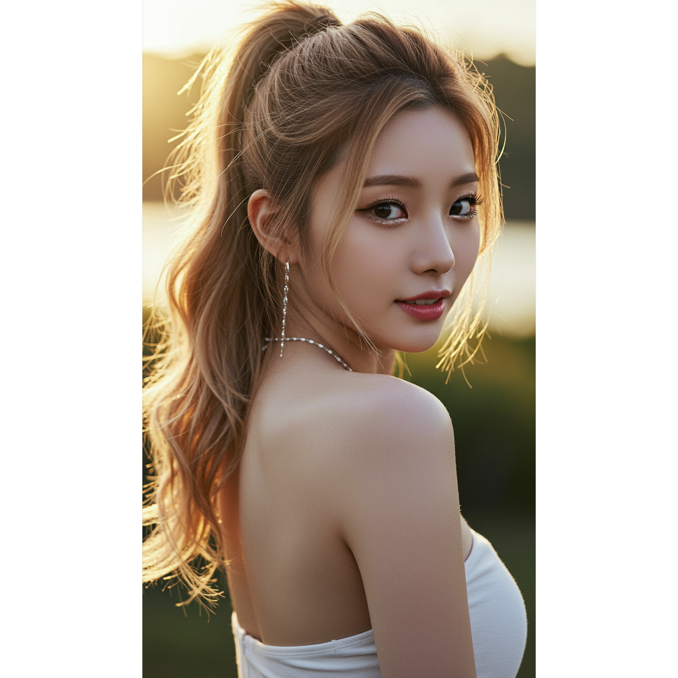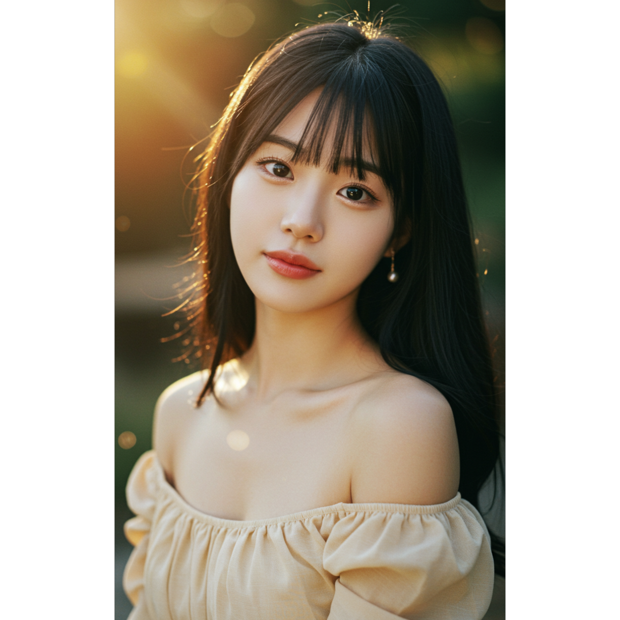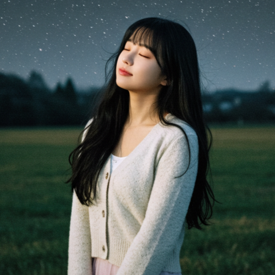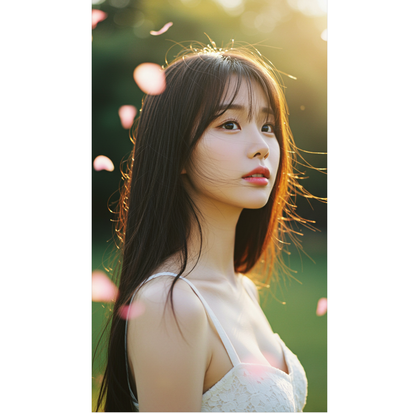 Mid-tempo Japanese pop ballad, 96BPM, Bright and rhythmic clean electric guitar riff (repeating as Hook, not sung), Soft ambient pad, light acoustic harp textures, and minimal kick/snare groove (brush style) to provide subtle bounce, Intro and Outro are instrumental only, designed to convey warmth and emotion without vocals, Youthful Korean female vocals (age 17–19), soft and breathy in verses, full chest voice in choruses, No falsetto, No robotic tone, No vocal switching, Overall tone must feel emotionally fresh, uplifting, and cinematically heartfelt