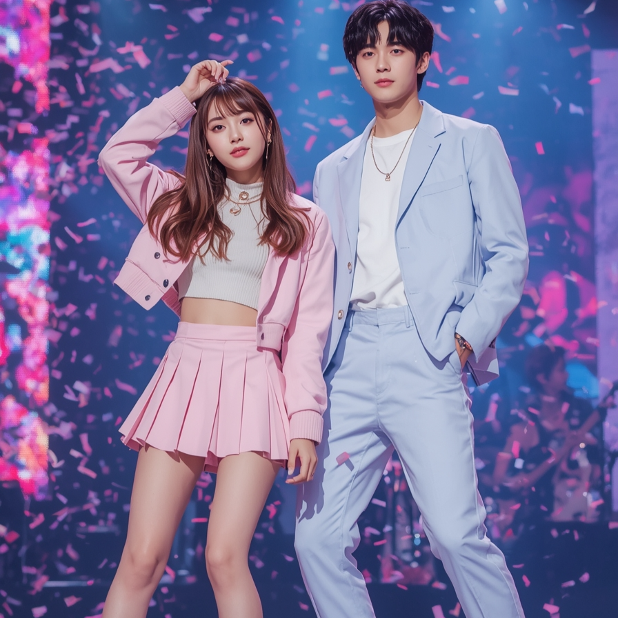 City Pop × J-pop dance fusion, groovy bassline, neon synths, funky guitar chops, upbeat 110 BPM groove, Bright female lead vocal with light echo, occasional male rap adlibs, Short intro under 4s, short outro under 4s, no long instrumental break, bridge under 8s, target length ~3:30, Emotional yet danceable, with catchy chorus hooks designed for modern 2025 J-pop stage performance