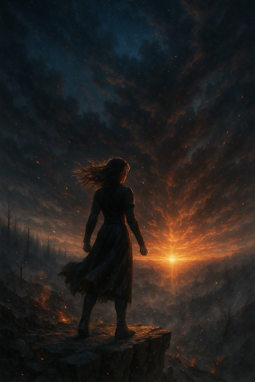 Guitar-driven powerful guitar folk metal ballad with soaring emotional solos and melodic female vocals, Slow build to cinematic climax, subtle bass