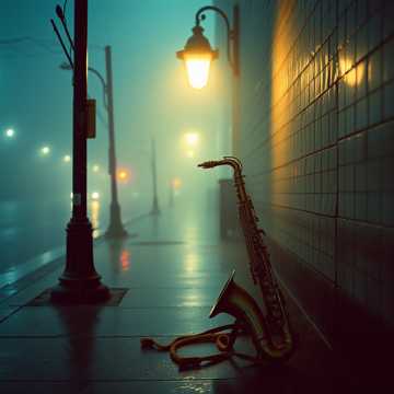 Blues, slow tempo, rusty atmosphere, tenor saxophone, guitar, bass, drums, piano, male inspired vocals