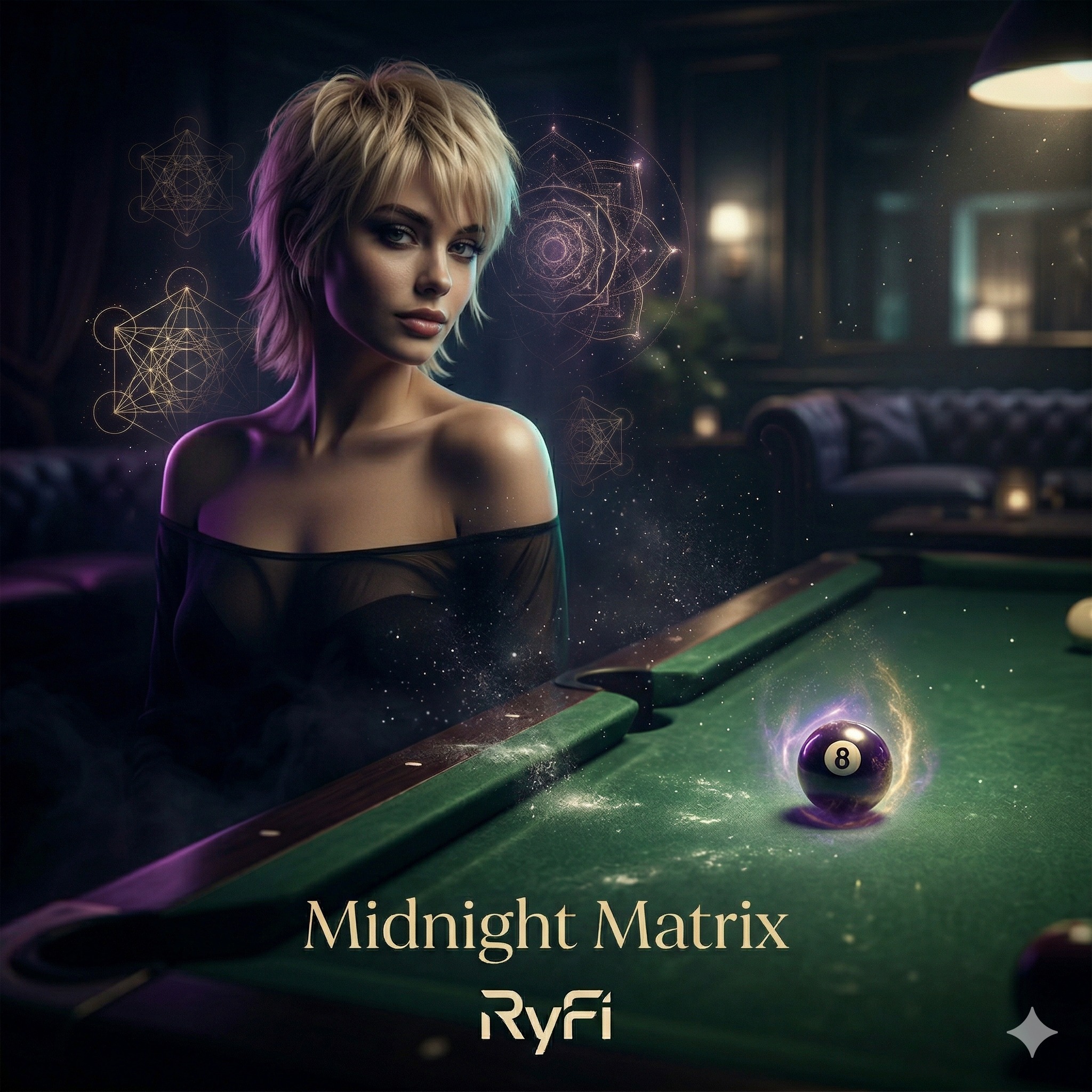 Lo-fi Hip Hop, Ethereal Space Ambient, Liquid Drum and Bass, Chillhop with Dark Cinematic Overtones, Smooth Fender Rhodes Piano, Deep Sub-Bass, Glitchy Percussion, Cosmic Pads, 90 BPM, Sophisticated and Mysterious