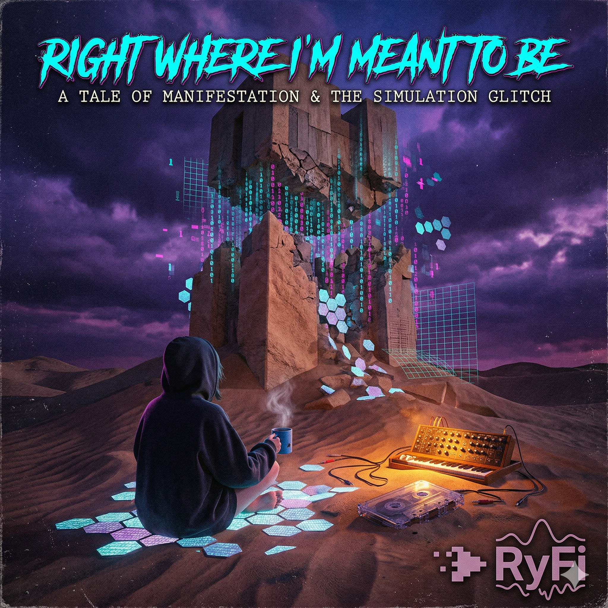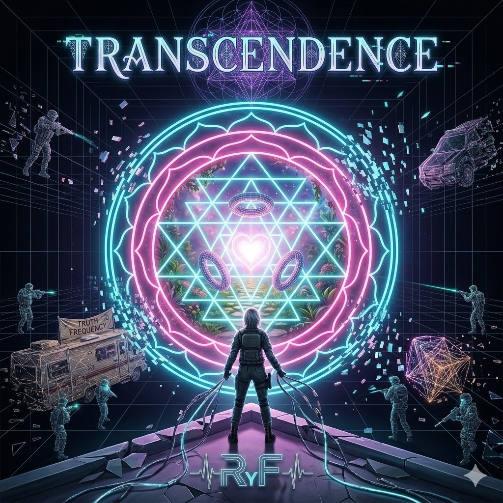 Cinematic ambient cyber-r&b, synthwave trap beat, 432hz healing frequency resonance, deep pulsing sub bass, lush ethereal synthesizers, smooth melodic hip hop vocals, poetic, atmospheric, hypnotic, futuristic, transcendent, wide stereo soundscape