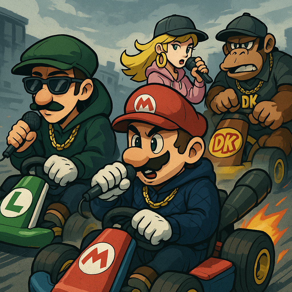 Explosive boom-bap energy meets futuristic production, Funky, fast-paced lyricism rides a breakbeat battlefield, A high-octane throwback with razor-sharp modern edge