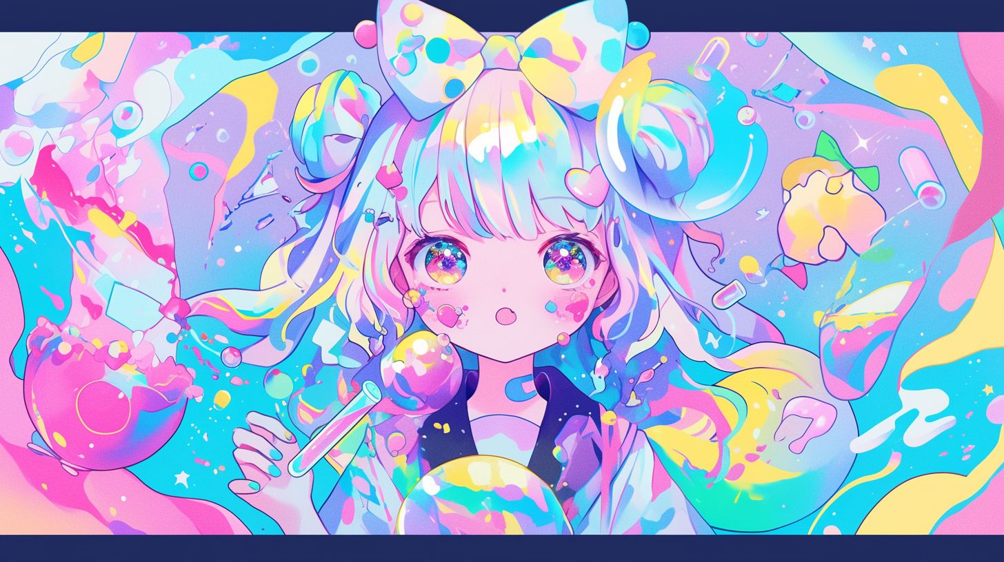 Mood: dreamy, sparkling, candy-colored, kawaii science-fantasy, radiant and magical, Ke