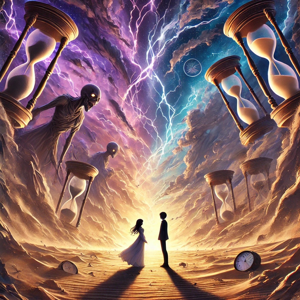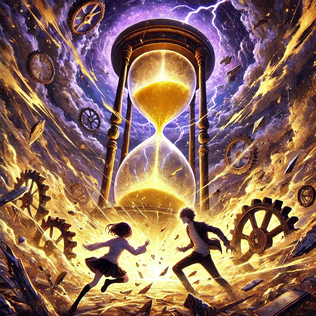 Hinae, a young man, hears conflicting voices as the Hourglass cracks. With Kaya, a mysterious girl, they journey to prevent chaos, facing moral dilemmas and the loss of memories in a world of sand.