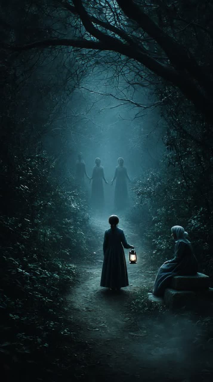 Dark choral celtic folk lullaby, young girl singing, Sinister and tense atmosphere filled with nature ambient sounds