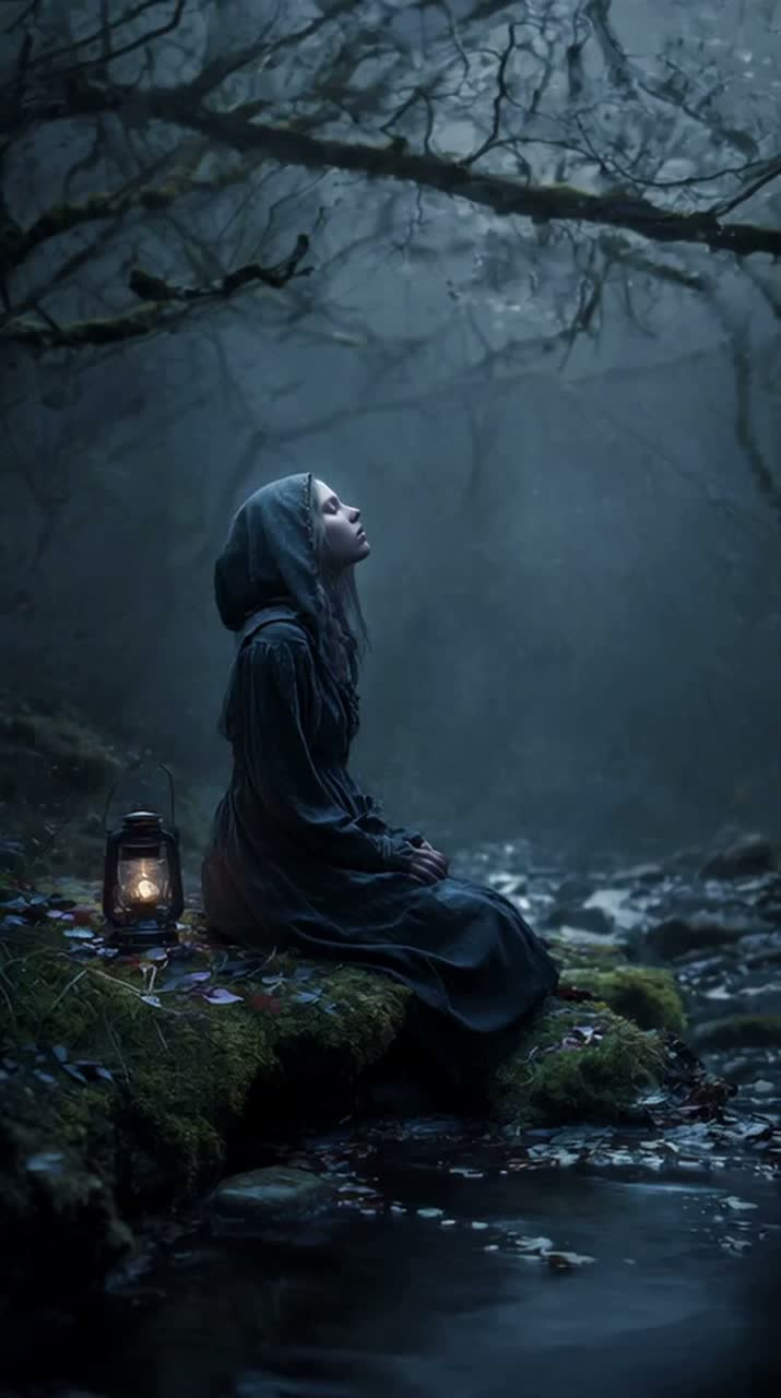 Lyrics theme: Spell of the Withering Moon — ancient forest ritual, sorrow, lost memories, moonlight magic