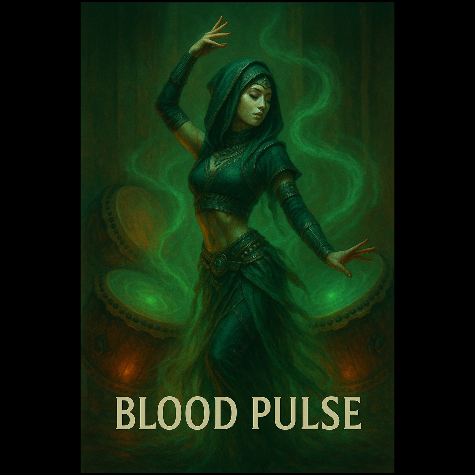 Dark club opera song with driving taiko drum beat, haunting synths, and some strong sexy female vocals, Pulsing, driving beat, Club energy meets dark ambient
