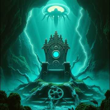 Omonious stoner epic metal boss fight steampunk song for D&D in a former beholder lair with otherwordly influence on a already maddening colorful forest cave stronghold within Feywild crazy nature setup, droning buzzing ambiant FX