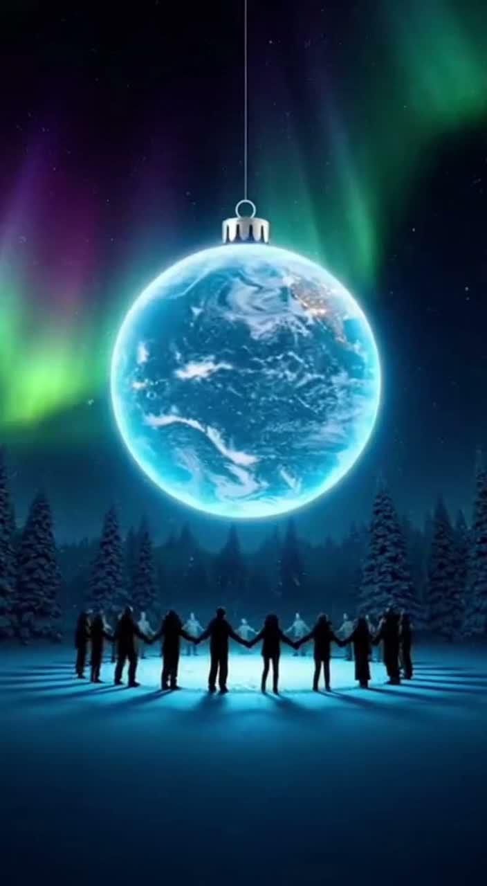 Powerful Orchestral Christmas music, upbeat, uplifting, multicultural representation, soaring strings, powerful woodwinds and majestic bells, backing synth, drums; Male and female vocals of different ethnicities, world, choir-driven with diverse solo voices; claps in places, Festive sleigh bells in background in begining