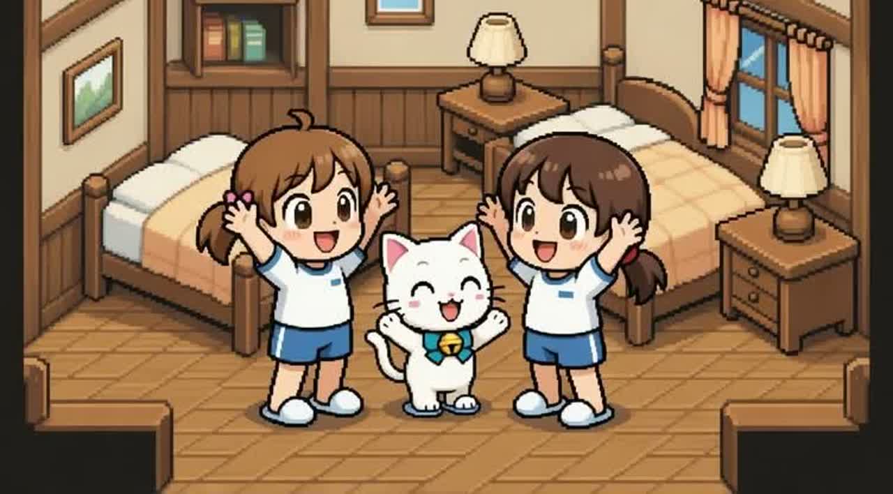 8bit chiptune, Famicom style RPG password input screen BGM, Cute and emotional melody inspired by a cozy little girl’s bedroom in pixel art, Warm wooden room, pink bed, cat plushies, nostalgic atmosphere, Melodic square wave lead, soft triangle bass, gentle arpeggio harmony, Slightly sentimental but hopeful mood, Simple looping structure (20–30 seconds seamless loop), Slow to mid tempo (90–105 BPM), Major key with a touch of bittersweet emotion, No vocals, Pure retro game BGM, Authentic NES sound chip style, 2 pulse waves + triangle + noise channel, Delicate, heartwarming, magical feeling, Extra cute bouncing rhythm, playful melody jumps, soft toy-like atmosphere