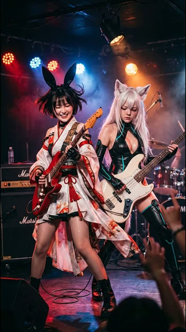 Create a high-energy music concept that combines the following elements:Genres: Nu metal, Heavy metal, Kawaii core, Cyber trance, TechnoTempo: FastVocals: Female Vocaloid with a cute and energetic toneInstrumentation: Heavy guitar, punchy drums, heavy groove, aggressive and raw soundAdditional Instruments: Synthesizer and violin performancesThe overall mood should be extreme, powerful, and emotionally intense, blending aggressive metal with electronic and kawaii aesthetics