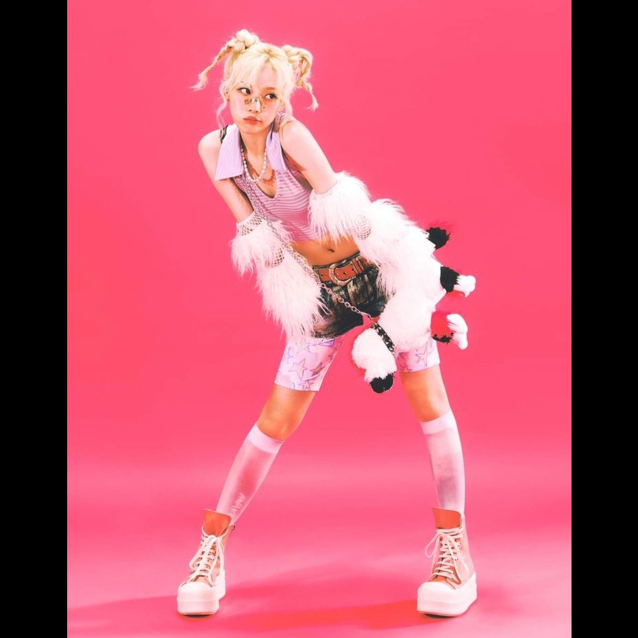 female vocals, beat drops, This version is a light, playful K-pop pop track with cheerful synths, bouncy plucks, and a soft, rhythmic beat perfect for a sweet crush vibe, The tempo is upbeat but relaxed, with finger snaps, soft claps, and minimal percussion to keep it airy and fun, Bright pads, sparkling vocal layers, and playful ad-libs give it a youthful, carefree energy, making it feel like a sunshine-y, smile-inducing song—something perfect for K-pop, becomes a high-energy, colorful, and bubbly pop track, The beat is upbeat and danceable, with a bright four-on-the-floor kick, snappy claps, and cheerful hi-hats giving it that irresistible rhythm, Layered synths, plucky melodies, and sparkling chimes provide a sugary, playful texture, while subtle style risers and drops accentuate the chorus, making it feel dynamic and fun, trap beat, playful, danceable disco-pop track with funky basslines, groovy guitar licks, and sparkling synths
