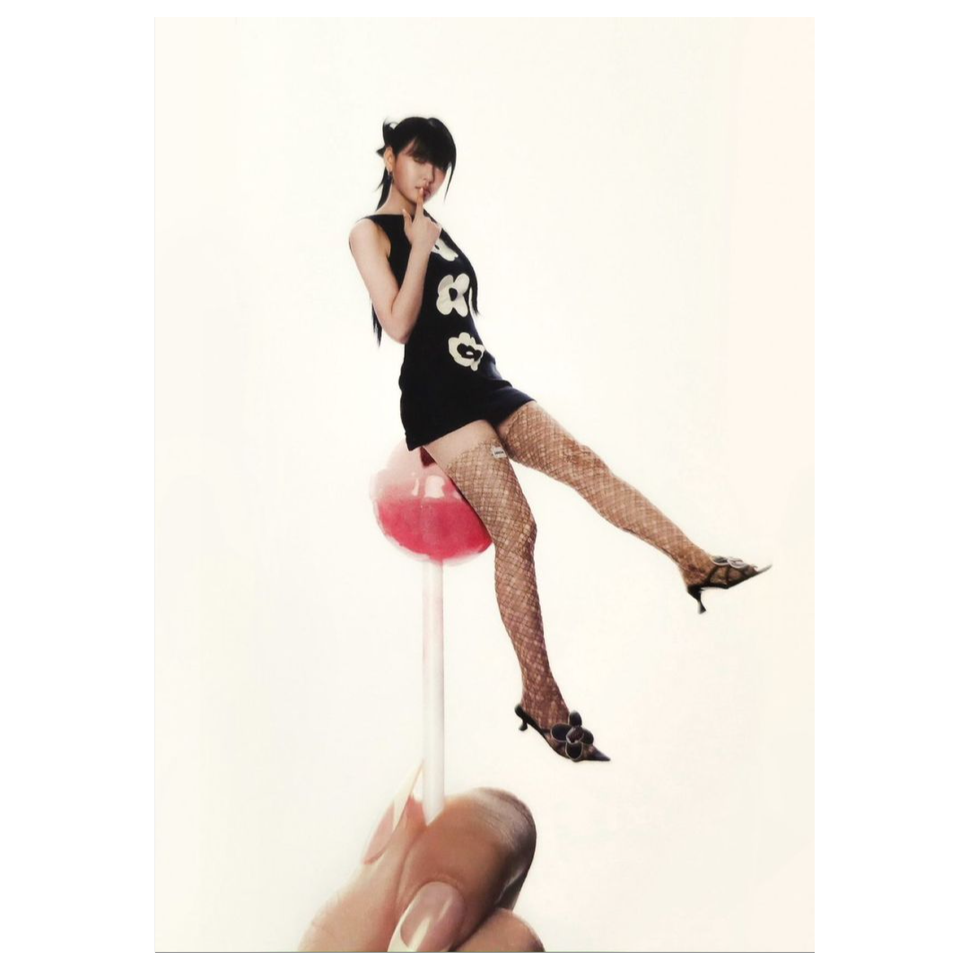 female voice, he song leans into a hyperpop-inspired pop-rap sound with glossy Y2K attitude, The beat would be bouncy and bass-heavy, sitting around 120–135 BPM, driven by punchy 808s, crisp trap hi-hats, and sparkling synth leads that feel sugary but slightly distorted, There’d be playful plucks and candy-like sound effects layered over a confident, rhythmic drum pattern, with the breakdown switching into a minimal, chant-driven section where the bass hits harder and the call-and-response vocals take center stage, Overall, it’s bright, bratty, and high-fashion — sweet on the surface but built with sharp, hard-hitting production underneath