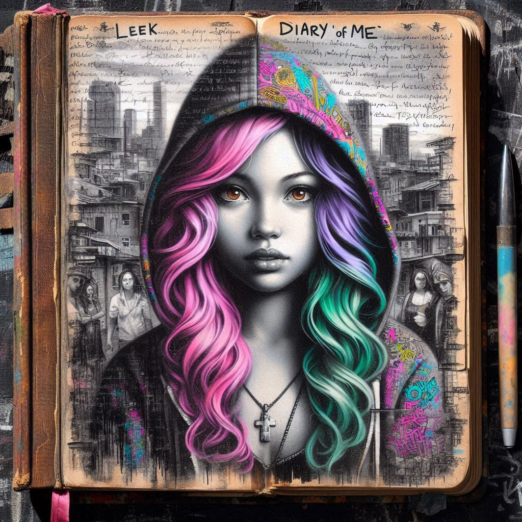 German female rap track blending experimental hip-hop, dark boom bap, industrial rap, and ambient trap, The beat features gritty drums, distorted Moog bass, deep sub bass, color bass textures, and kick bass with strong sidechain compression, Sound effects include granular delay, bitcrushing, reverse reverb, formant shifting, and sidechain gate for a raw, broken, and atmospheric soundscape, Vocals are female, slightly raspy, emotional, snotty, gritty, and smokey – conveying sadness and defiance, Use vocal fry for emotional depth and vocal stutter FX for emphasis, Vary rap tempos between slow, drawn-out lines and faster flows, Emphasize key words with strong articulation, Apply reverb and delay for atmosphere, especially on hooks and bridges, noise creepeauter, coupé-décalé, background orchestral effecte Violinen Staccato-Rhythmen, Sul, Tremolo, Glissando, Pizzicato, Flageolett, Staccato-Rhythmen