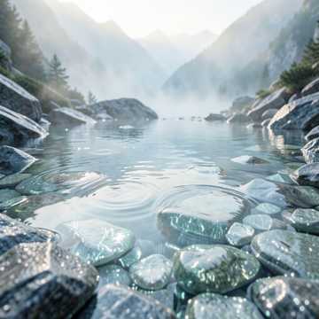 crystal clear, icy, refreshing, serene, delicate, virtuosic, nature-inspired, pure, flowing, cinematic, intimate