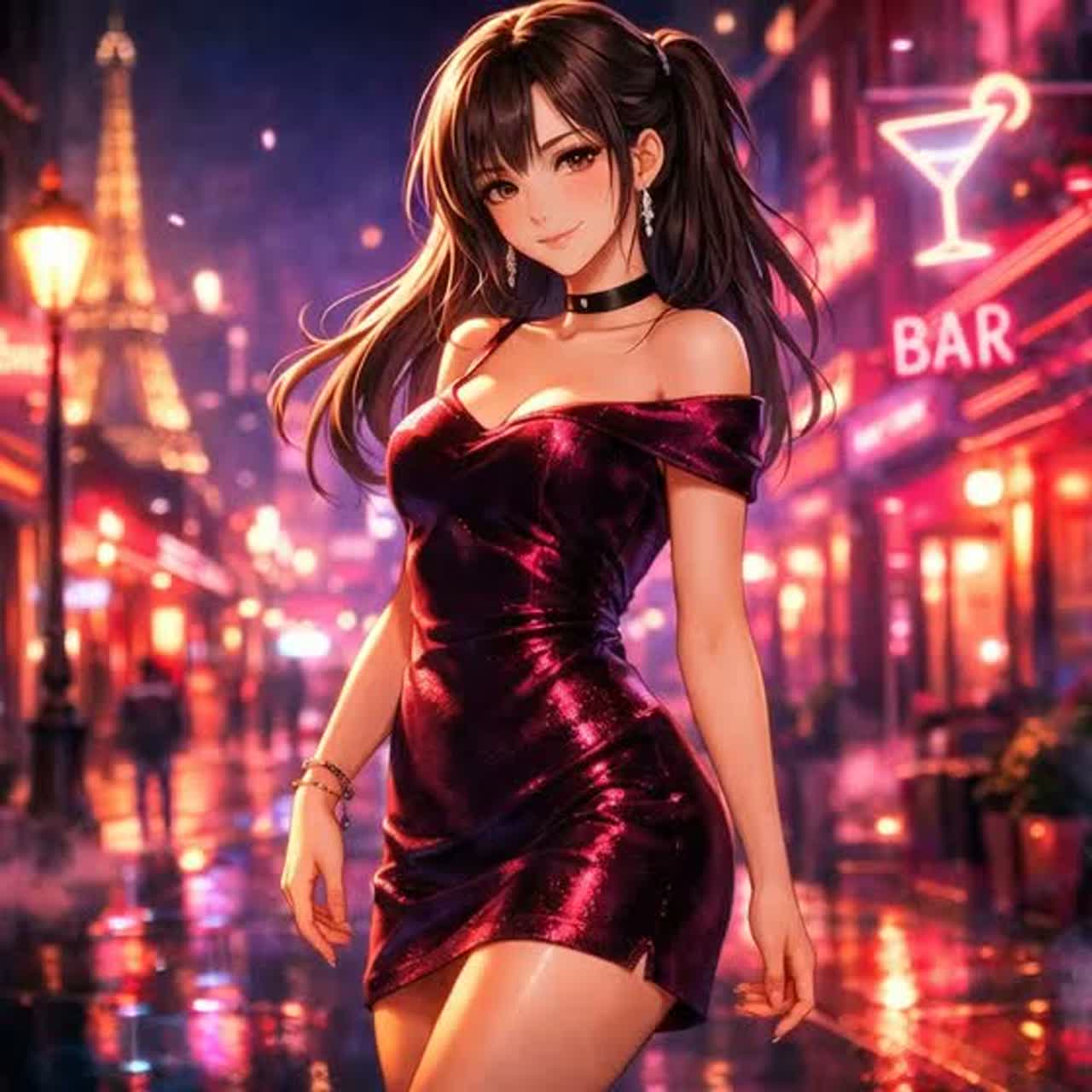 A stylish and sensual fusion of French pop and Baile Funk, delivering an addictive and danceable groove driven by a soft, airy, whispery female vocal that melts into the night atmosphere, enriched with elegant jazzy chord progressions using major7 and add9 harmonies, shimmering electric piano and dreamy synth pads creating a floating neon-lit Paris night ambiance, while a tight and bouncy Baile Funk rhythm with a deep, punchy, funk-driven bassline leads the groove, supported by crisp 16-beat drums, subtle syncopation, and rhythmic cutting guitar, forming a minimal yet hypnotic repetition that builds trance-like energy, expressing romance through sound with the imagery of perfume, breath, glances, and near-touch tension, blending sweet elegance and club energy with a smooth reverb space and polished urban texture, resulting in a chic, modern, dreamy, seductive, and groovy sound where catchy pop melody and infectious funk pulse merge into a vibrant, emotional, and stylish Velvet Funk Rom