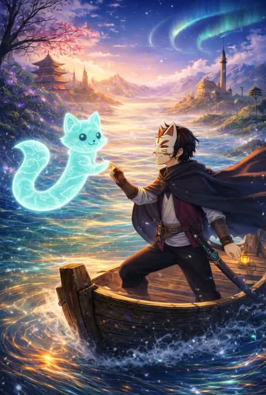 Concept: Fox masked youth and AI companion travel across nations through chromatic modulation while retaining subtle Yo scale aura